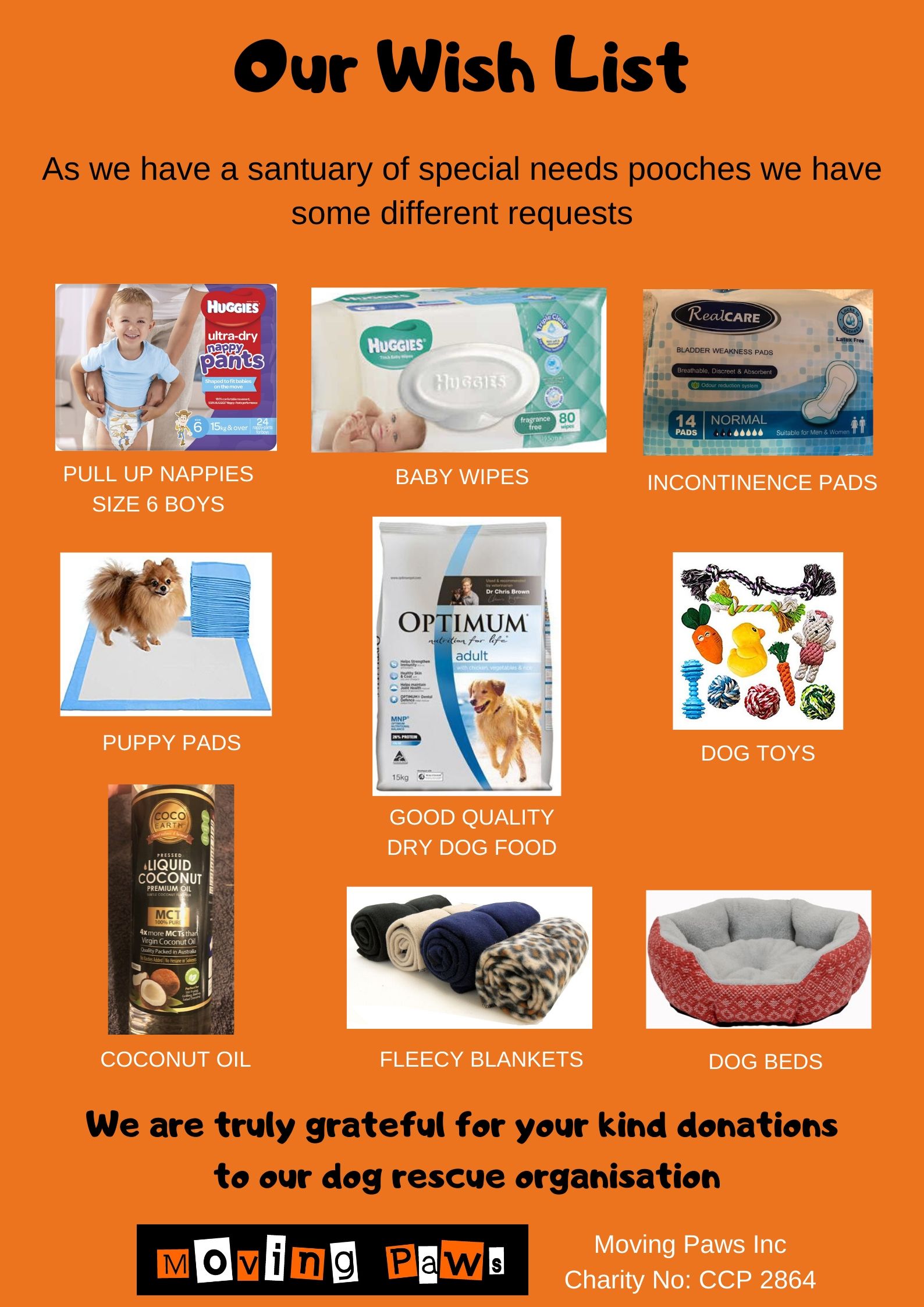 Moving Paws are very lucky to have Collection Bins for our supporters to drop off much needed goodies for our rescue pooches.